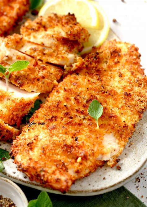 - Bread the chicken: Dredge each chicken breast in the flour, then dip in the egg, and finally coat thoroughly in breadcrumbs. Gently press the breadcrumbs to ensure they adhere well.